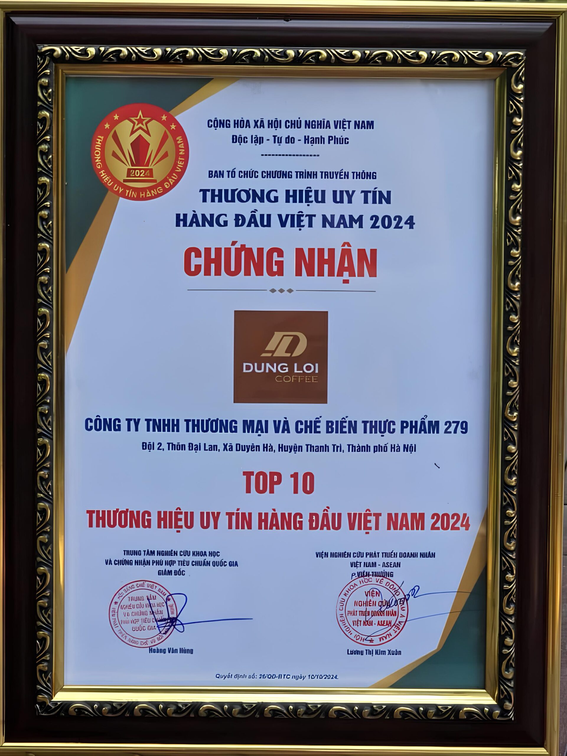 279 COFFEE – THƯƠNG HIỆU ĐƯỢC VINH DANH VỚI NHỮNG CHỨNG NHẬN UY TÍN HÀNG ĐẦU